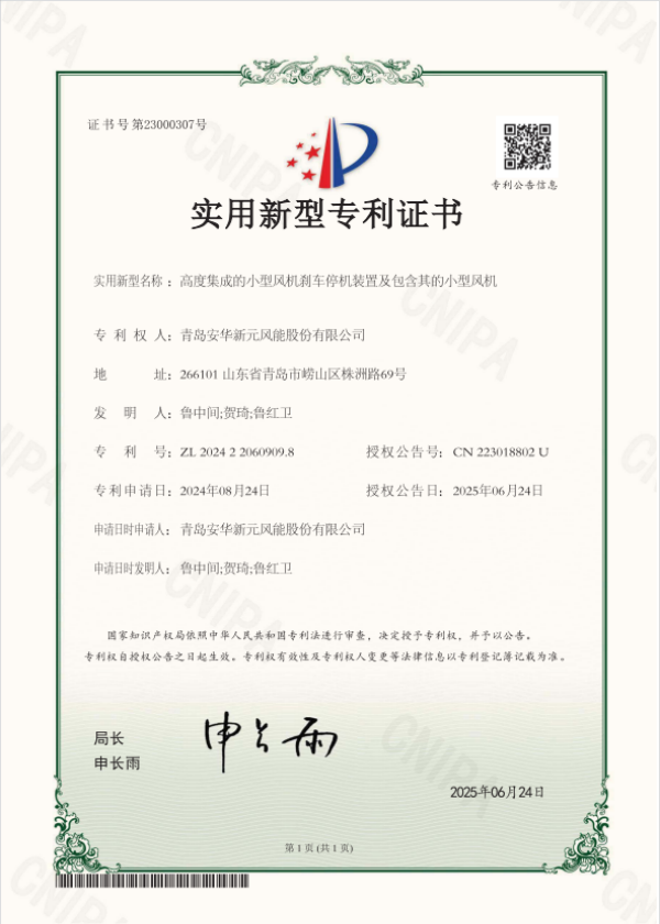 高度集成的小型风机刹车停机装置及包含其的小型风机
