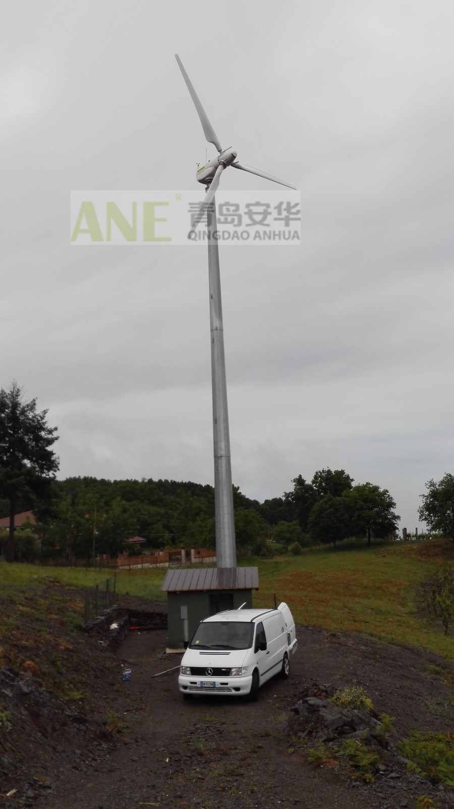 小型风力发电机的结构比较简单,一般采用叶轮侧偏式调速方式,这种调速机构在风速风向变化转大时容易造成风轮和尾翼的摆动,从而引起风力机的振动。因此,在风速较大时,特别是蓄电池已经充满的情况,应人工控制风力机停机。在有的小型风力机中设计有手动刹车机构,另外在实践可采用侧偏停机方式,即在尾翼上固定一软绳,当需要停机时,拉动尾翼,使风轮侧向于风向,从而达到停车的目的。
